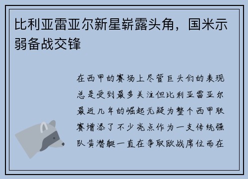 随着比利亚雷亚尔新星的崭露头角,球队的进攻实力逐渐增强,而国际米兰在备战过程中也展示了极强的决心和准备。这场即将到来的对决,无疑将是一场精彩绝伦的比赛,球迷们也将拭目以待,期待两支球队的碰撞将带来怎样的精彩剧情。